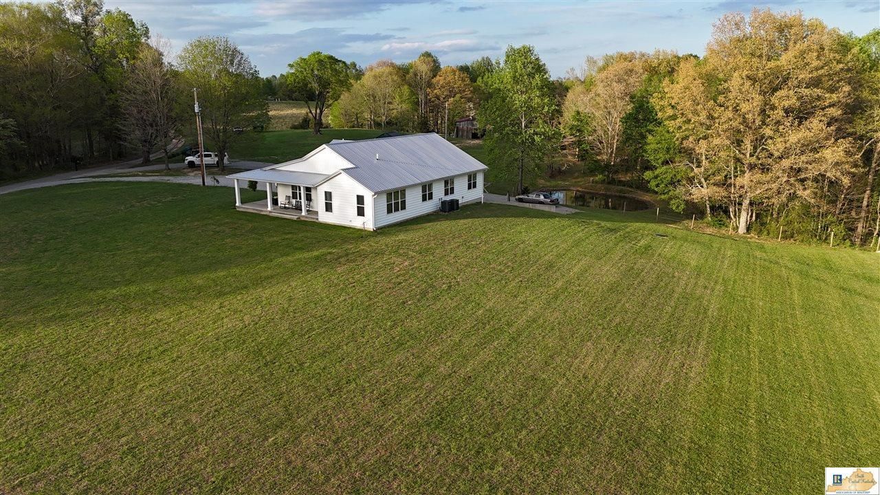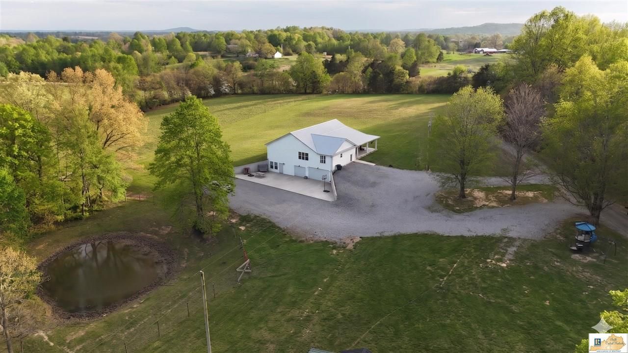Located in Green County, this 76 acre property offers a combination of residential living, agricultural use, and recreational opportunities. The property includes a custom built home constructed approximately three years ago along with a mix of open ground, wooded acreage, and water features. The home offers approximately 2,350 square feet on the main level with four bedrooms and two full bathrooms. Interior features include solid wood doors, 36 inch doorways, large walk in closets, quartz countertops, custom soft close cabinetry, and stainless steel appliances. The primary bathroom includes a soaking tub and separate walk in shower. A wrap around porch and large patio provide additional outdoor living space. The basement includes approximately 2,350 square feet with a finished living area, additional room, and full bathroom. There is also a finished two car garage with workspace, an additional unfinished garage area, and storage. The home is serviced by 400 amp underground electric, two HVAC systems, and a septic system. The land is a mix of open and wooded acreage, with approximately 70 percent in timber. Established trails run throughout the wooded areas and may be used for ATV access or recreation. Open ground is partially fenced and may be suitable for livestock or agricultural use. Two ponds are located on the property, including one behind the home. The property also includes a pole barn for equipment or livestock use and an insulated hunting stand. The mix of timber, water, and open ground supports wildlife activity including deer and turkey. The property is located approximately 35 minutes from Campbellsville and Elizabethtown, providing access to services while maintaining a rural setting. This property offers a combination of a recently constructed home, agricultural improvements, and recreational land. Buyers should verify all details including utilities, acreage, and intended use. Contact Land Specialist Dane Driscoll with any questions or to schedule a private tour.