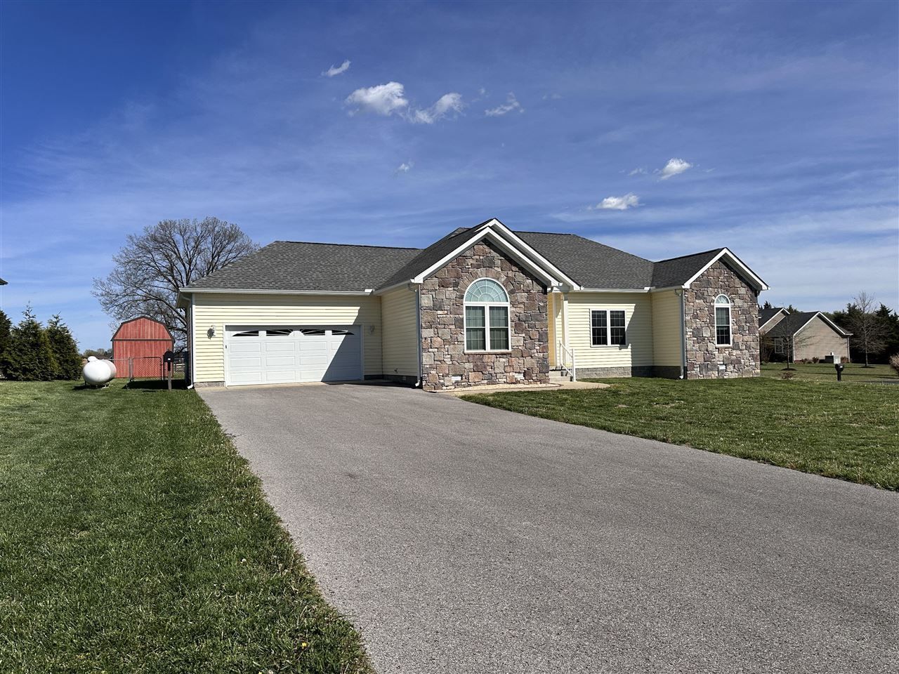 Located just in the edge of Allen Co, this property is in a great location in between Bowling Green and Scottsville! Sitting on a large 0.76+/- acre lot, part of the backyard is fenced while some remains open land. Extra room for storage in the outside shed and a Generac whole house generator. Enter the home to an open floor plan that features 3 bedrooms, 2 bathrooms, huge laundry room with ample shelving, and fresh paint throughout. The kitchen has beautiful custom hickory cabinets with under cabinet lighting and stainless steel appliances including a double oven/range with gas cooktop. The master suite has vaulted ceilings and a large walk-in closet. With over 1,600 sq ft, this property is move-in ready! Call today!